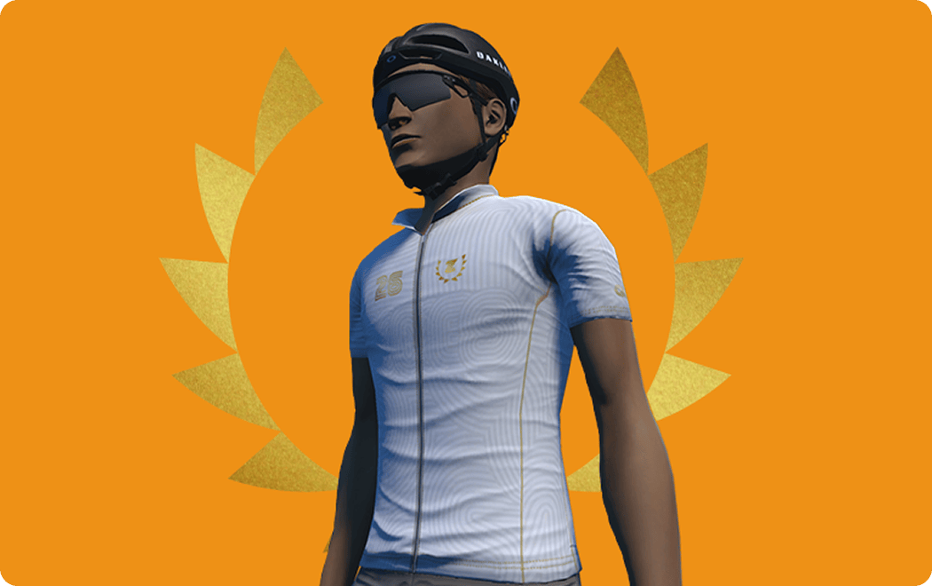 Schließe fünf beliebige Etappen der Zwift Games ab und schalte den Oakley Velo Stelvio™-Helm frei. Ein großes Dankeschön dafür, dass du dich durch die härtesten Etappen der Games gekämpft hast.